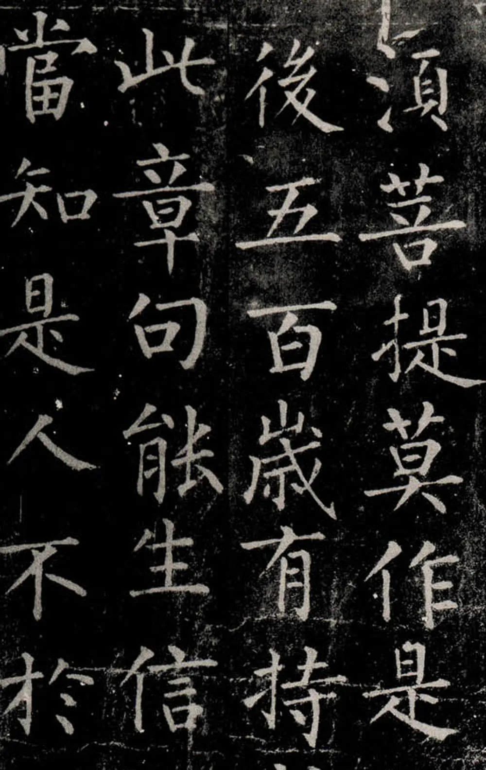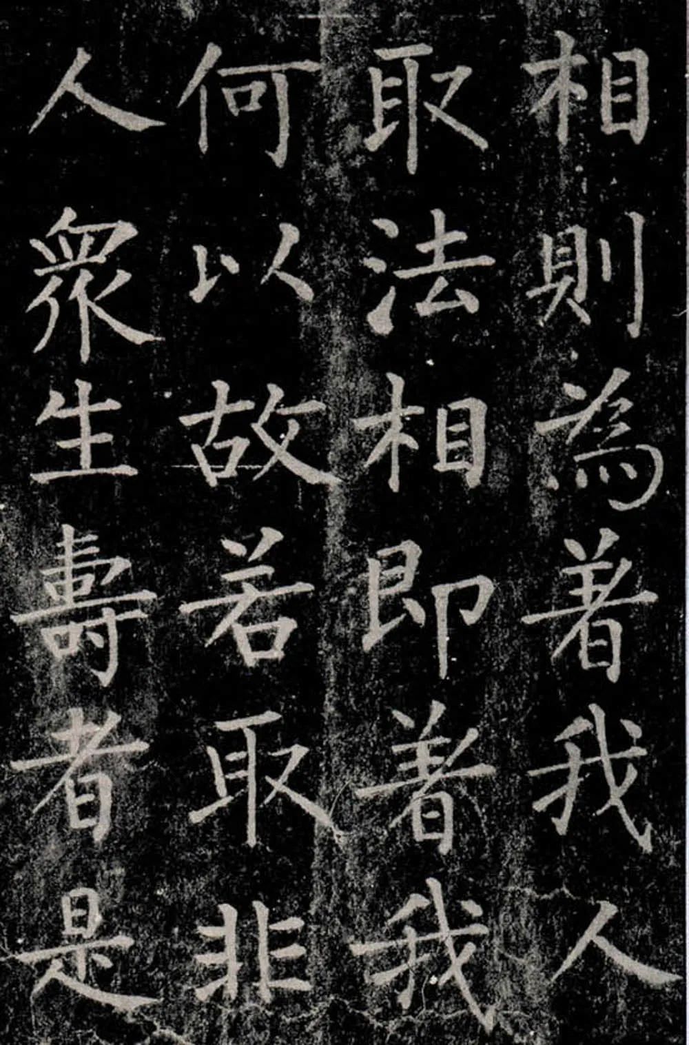 《金刚经刻石》此为柳书早期代表作品。其楷书用笔灵巧劲健,笔道瘦挺遒劲而含姿媚;结体缜密,以纵长取形,紧缩中宫,开展四方,清劲而峻拔。“柳骨”于此可初识,而柳集众书于此亦可知。宋董逌云:“诚悬书金刚经,柳玭谓备有钟(繇)、王(羲之)、欧(阳旭)、虞(世南)、褚(遂良)、陆(柬之)之体。今考其书,诚为绝艺,尤可贵也。”(《广川书跋》)