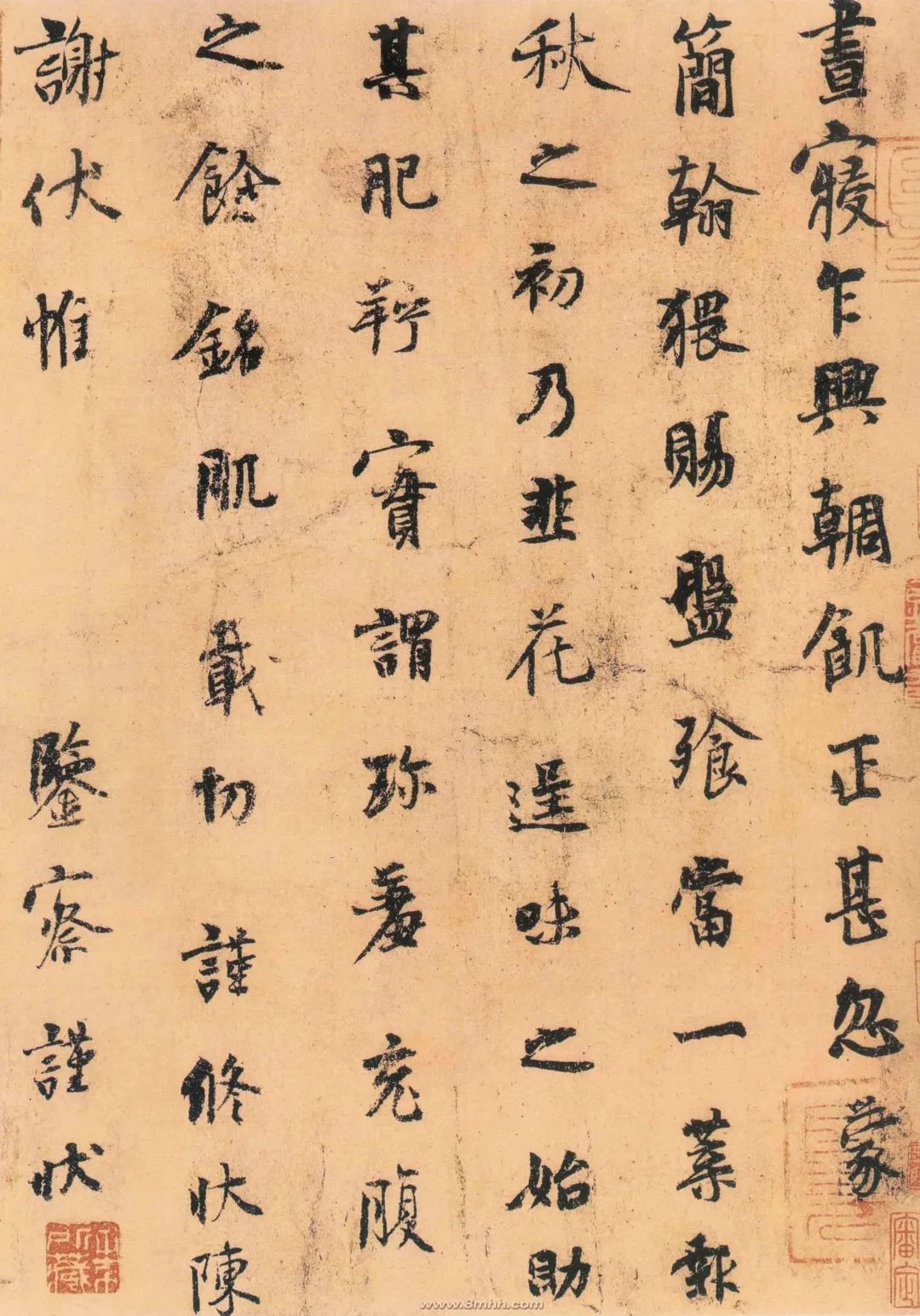 宋代士大夫讲究生活品味,对于文房用具尤其考究。蔡襄搜寻到纸中名品-“澄心堂”纸。据说它“肤如卵膜,坚洁如玉,细薄光润”,是相当珍贵、难求的名纸。全文以行楷写成,结体端正略扁,字距行间宽紧合适,一笔一画都甚富体态,工致而雍容。是蔡襄晚年崇尚端重书风的代表之作。
