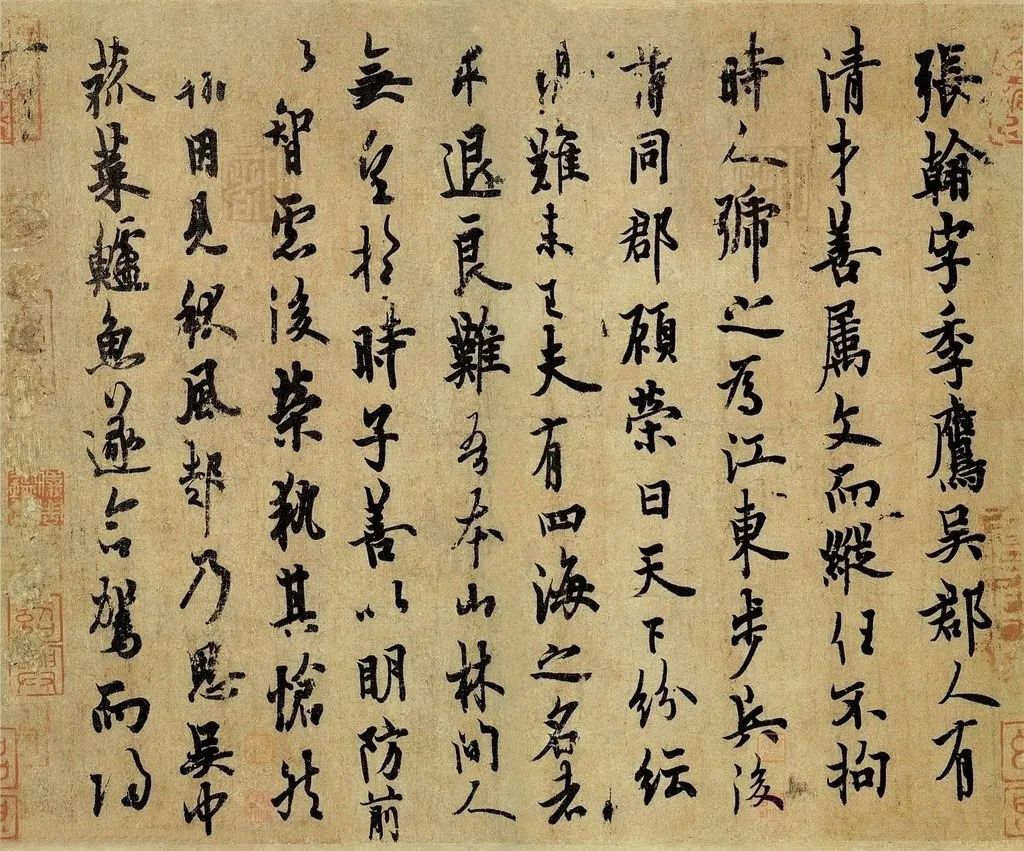 《张翰思鲈帖》局部,纸本,行书,唐,欧阳询