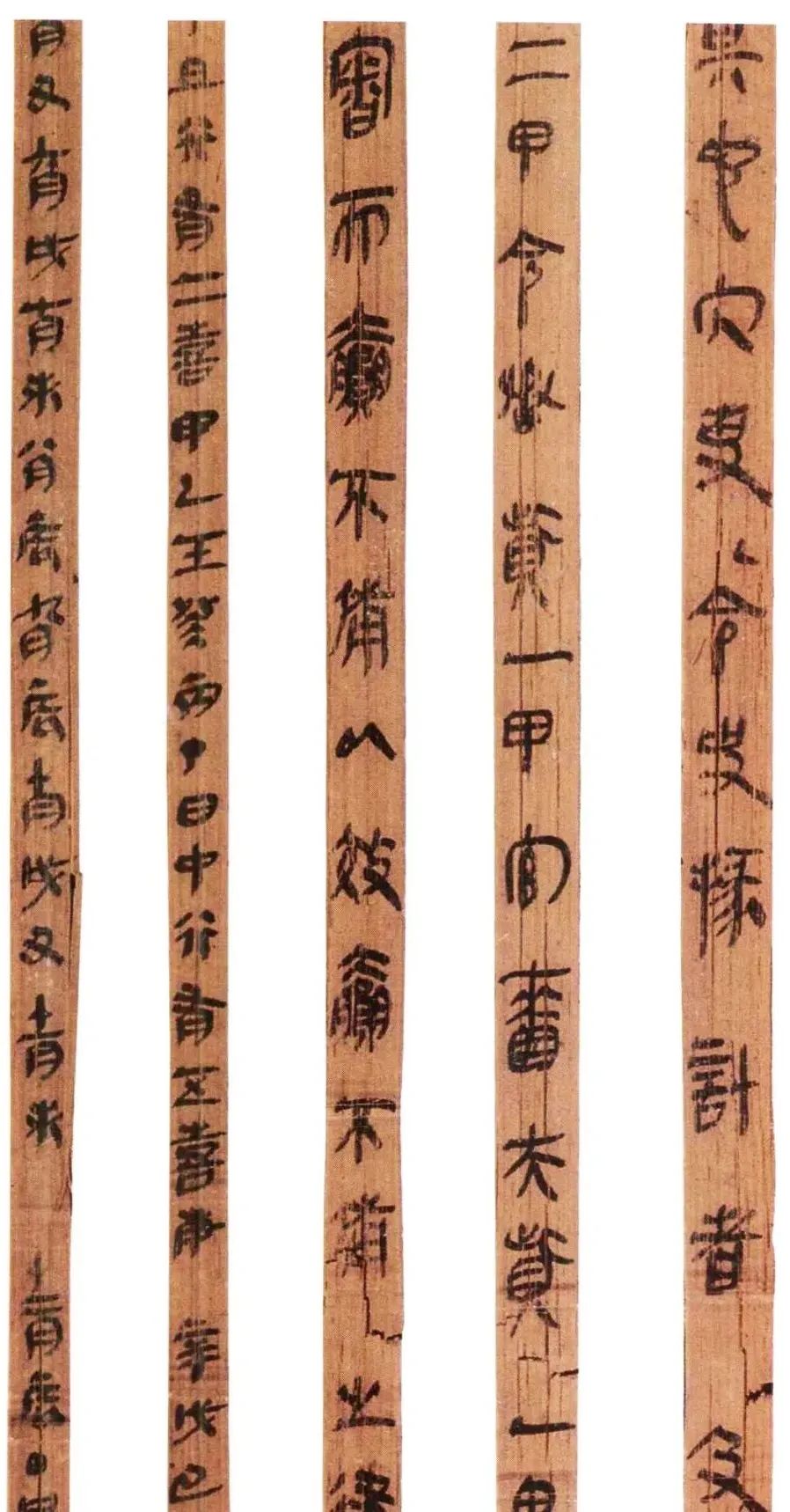 睡虎地秦墓竹简,又称睡虎地秦简、云梦秦简等,内容涵盖法律制度、行政文书、医学著作等。虽为篆书,但用笔大为简化,结体趋于方正,行笔有方有圆,波浪笔势明显,已有少量隶书特点。