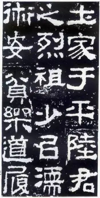 《衡方碑》也是汉代隶书成熟时期的作品。用笔极为有力,笔画丰润,在转折和撇、捺处尤见功力,形成外方内圆的效果。其结体方正,波、磔、撇、捺皆不张扬外露,字体方整严峻,以拙取胜,间架稳实厚重,章法行密字满,平正之中有欹斜之变。