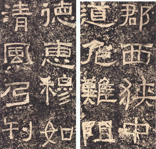 石刻的隶书历经千年的岁月,或因风化剥蚀,或因埋藏环境而产生各种物理破损和化学变化,呈现在我们面前的隶书拓本图片,形成一种岁月积淀下来的色彩斑斓的美感。