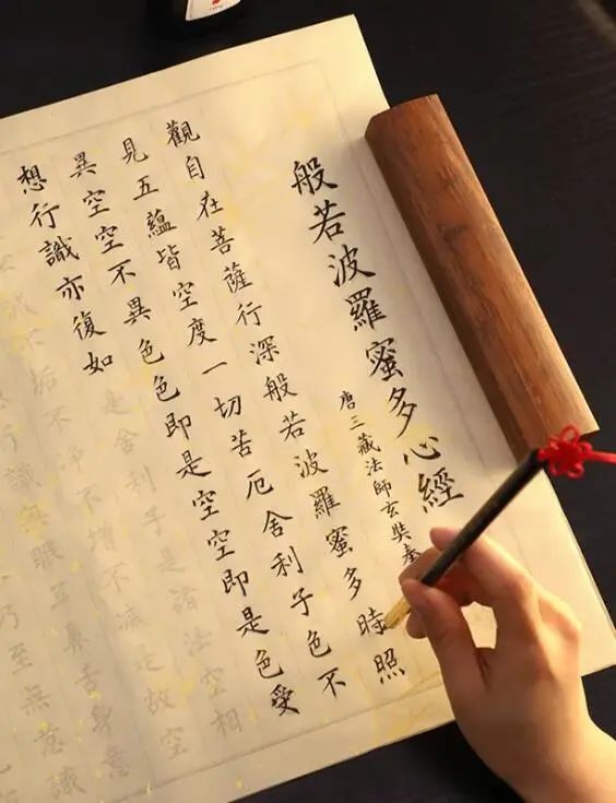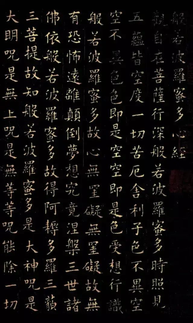 苏轼小楷《心经》为晚年所写精品。通篇布局开阔,行笔稳健却又遵循自然,收笔方圆并济,线条粗细混搭,字体略向右上倾斜,却未刻意改变字形,产生一种心旷神怡的感觉,与别家颇有不同。